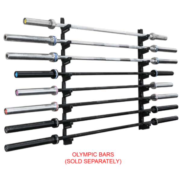 8-Bar Wall Mount Storage Rack offers storage for your Olympic barbells to protect your barbells while also creating a safe, clean, and organized home or light-commercial gym setting.